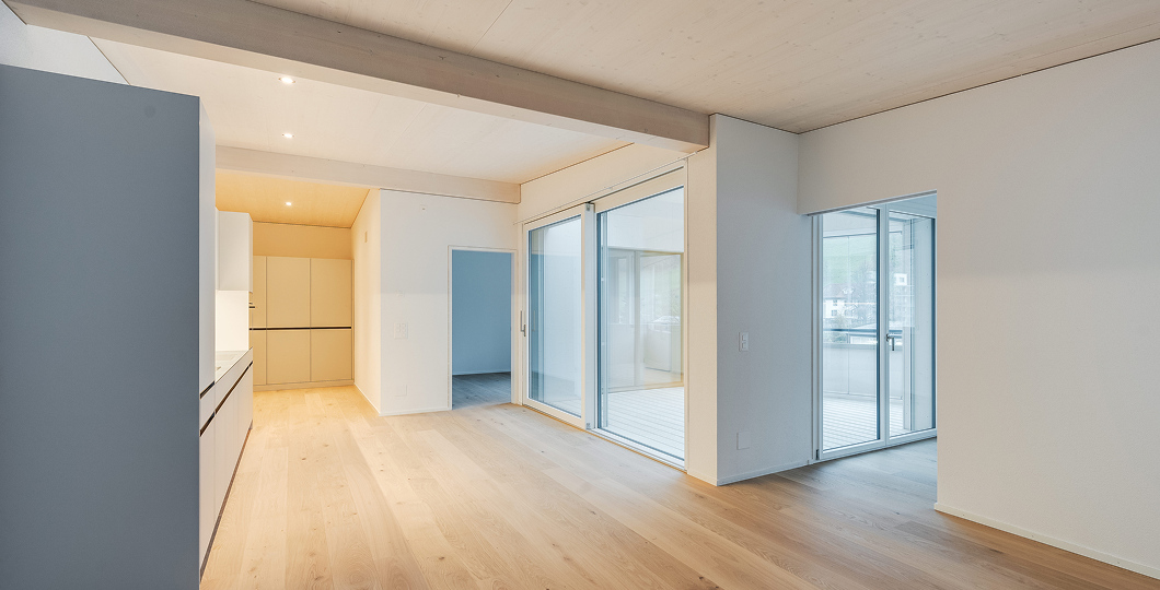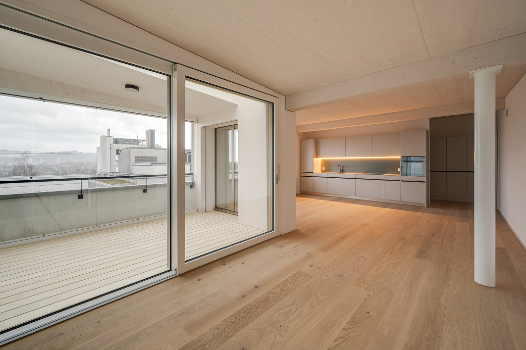 Die 64m2 grosse 2½- und bis zu 84m2 grossen 3½-Zimmer-Loft-Wohnungen haben einen zum grosszügigen Living hin offene Wohnküche. Die Loggia (gedeckte Terrasse) bietet einen herrlichen Weitblick. Sonnenstoren und Verglasungen bieten Wetterschutz, der Holzboden sorgt für angenehmen Komfort. In separaten Räumen befinden sich Schlafzimmer, in den 3½- Zimmer-Lofts zusätzlich Büro oder Gästezimmer, Bad und Reduit. Hochwertiger Innenausbau mit gebürstetem Eichenparkett, Glasfaseranschluss, smartem Lichtsystem Philips Hue und Premium Haushaltgeräten (eigene Waschmaschine und Tumbler). Die Wohnungen sind über einen Lift erschlossen, verfügen über einen Keller und geschlossenes Parking für Velo bzw. E-Bike.