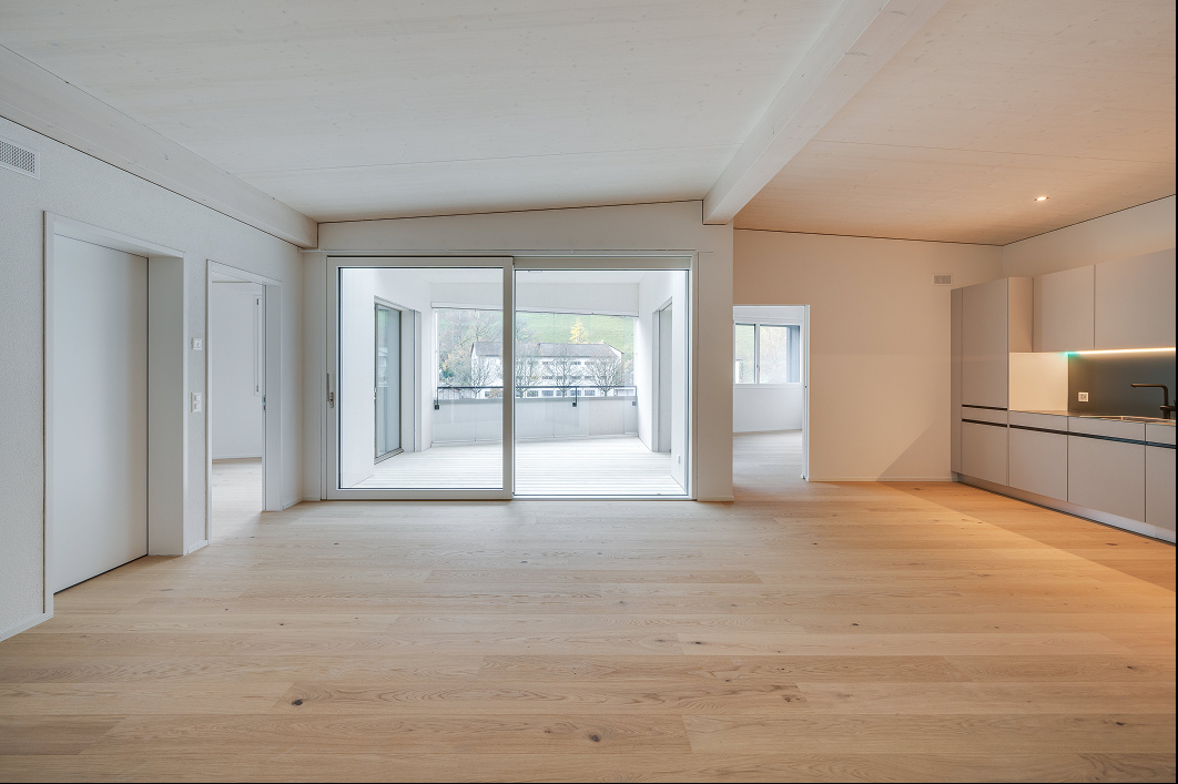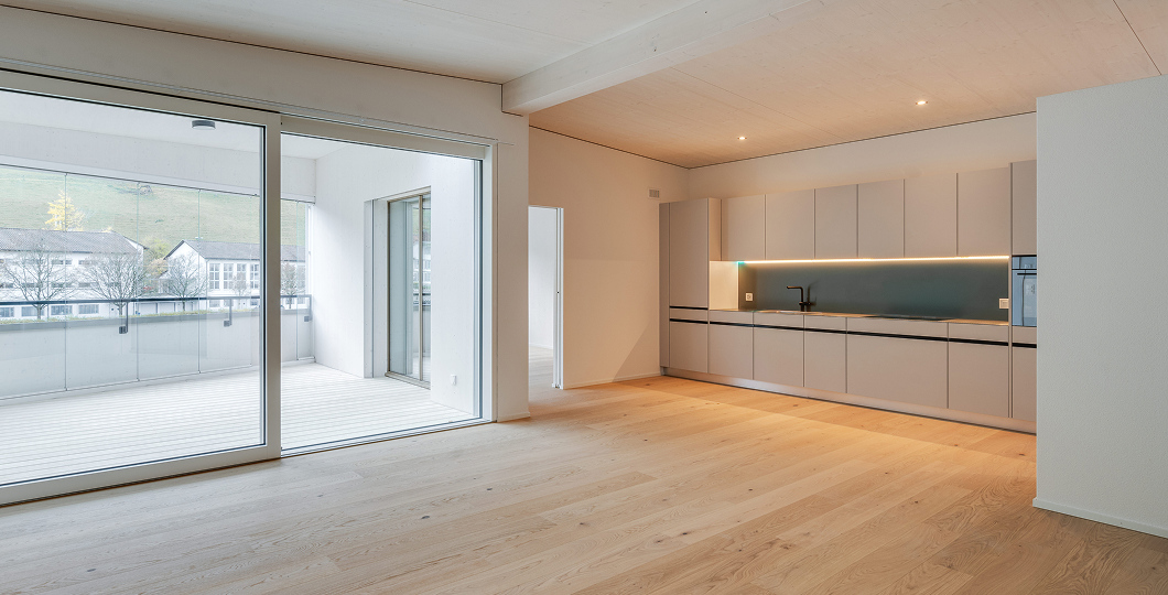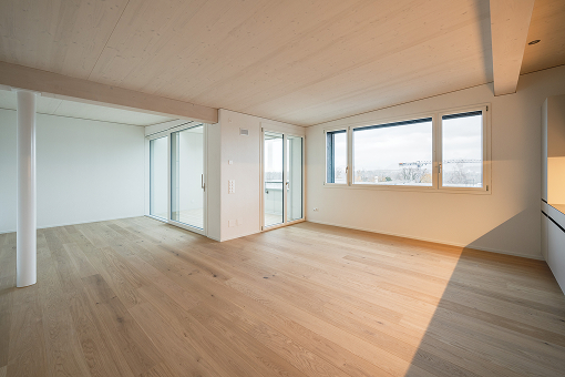 Die 64m2 grosse 2½- und bis zu 84m2 grossen 3½-Zimmer-Loft-Wohnungen haben einen zum grosszügigen Living hin offene Wohnküche. Die Loggia (gedeckte Terrasse) bietet einen herrlichen Weitblick. Sonnenstoren und Verglasungen bieten Wetterschutz, der Holzboden sorgt für angenehmen Komfort. In separaten Räumen befinden sich Schlafzimmer, in den 3½- Zimmer-Lofts zusätzlich Büro oder Gästezimmer, Bad und Reduit. Hochwertiger Innenausbau mit gebürstetem Eichenparkett, Glasfaseranschluss, smartem Lichtsystem Philips Hue und Premium Haushaltgeräten (eigene Waschmaschine und Tumbler). Die Wohnungen sind über einen Lift erschlossen, verfügen über einen Keller und geschlossenes Parking für Velo bzw. E-Bike.